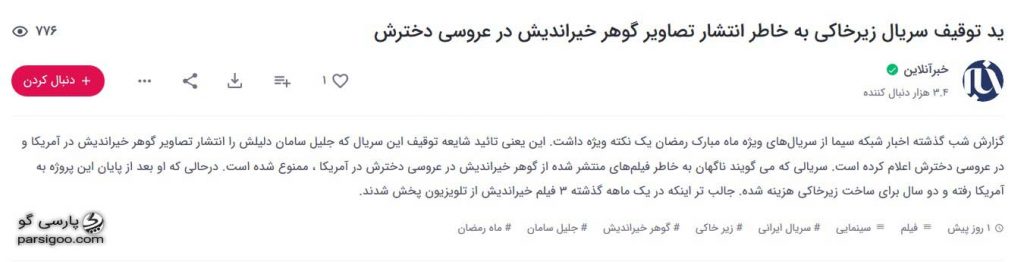 خبر توقف سریال زیرخاکی به خاطر ممنوع التصویری گوهر خیراندیش