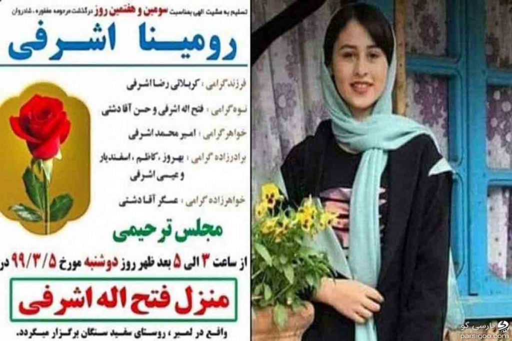 نام رضا اشرفی پدر رومینا اشرفی در آگهی ترحیم رومینا اشرفی