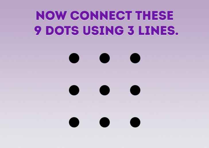 این ۹ نقطه را با ۴ خط صاف به یکدیگر وصل کنید.