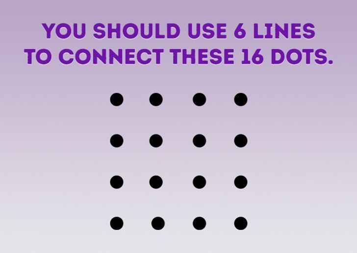 برای وصل کردن این ۱۶ نقطه به یکدیگر باید از ۶ خط استفاده کنید.