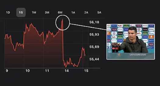 ماجرای کریستیانو رونالدو و کوکا و ژست فوق ستاره فوتبال جهان، با کنار گذاشتن بطری های نوشابه باعث افت شدید و ۱.۶ درصدی این شرکت در بازار بورس شد. بدین ترتیب از نظر اقتصادی، کوکاکولا از ارزش ۲۴۲ میلیارد دلار به ۲۳۸ میلیارد دلار رسید و خسارتی چهار میلیارد دلاری را متحمل شد.