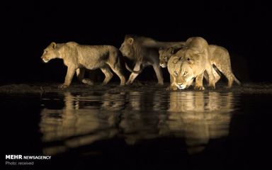 - آب خوردن شیرهای وحشی در شب ۳