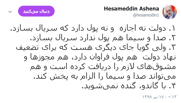۲. صدا و سیما هم که پول ندارد سریال بسازد.