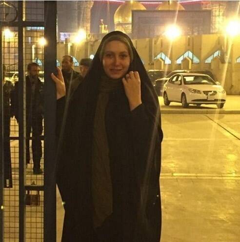 فریبا نادری در مسیر کربلا. حضور خانم بازیگر در راهپیمایی بزرگ اربعین